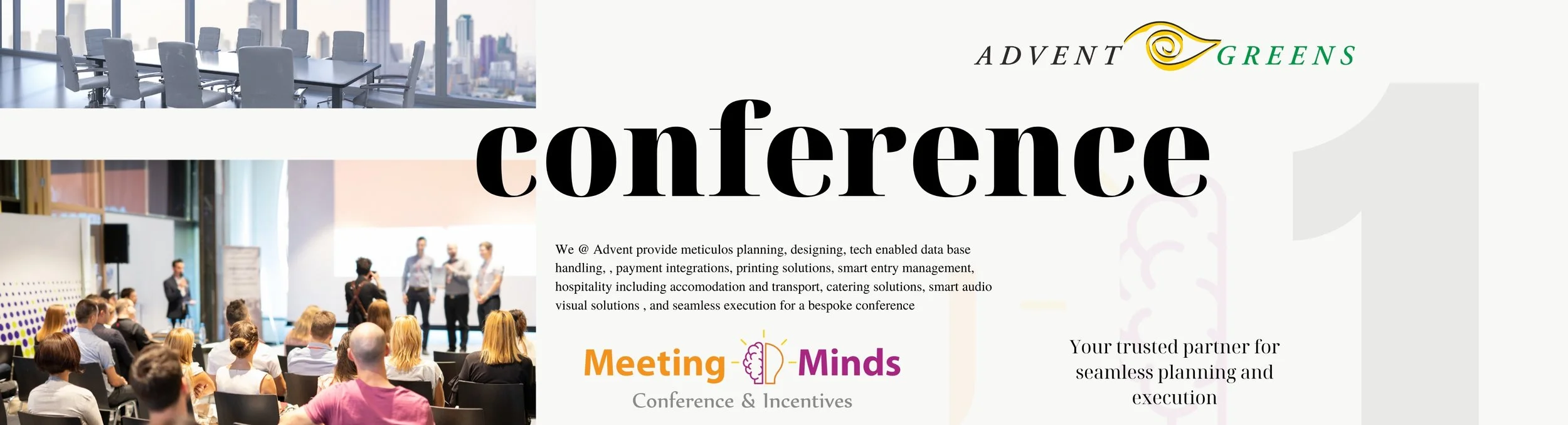 Meeting Minds is the strategic events and insights division of Advent Greens, where ideas converge and communities flourish. We specialize in curating transformative conferences, workshops, and branded experiences that spark dialogue, deepen connections, and drive purposeful impact. With a blend of precision planning and creative storytelling, Meeting Minds turns gatherings into movements. Advent Greens has an experience of more then 20 years in providing Professional Conference management services in Jaipur / Rajasthan